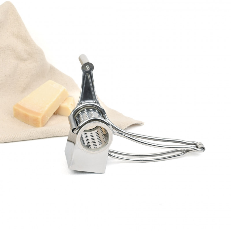 A professional quality grater, made of stainless steel, it is hygienic, resistant and durable, low maintenance and dishwasher safe. The grinder is removable (body, drum and handle) for easy cleaning.