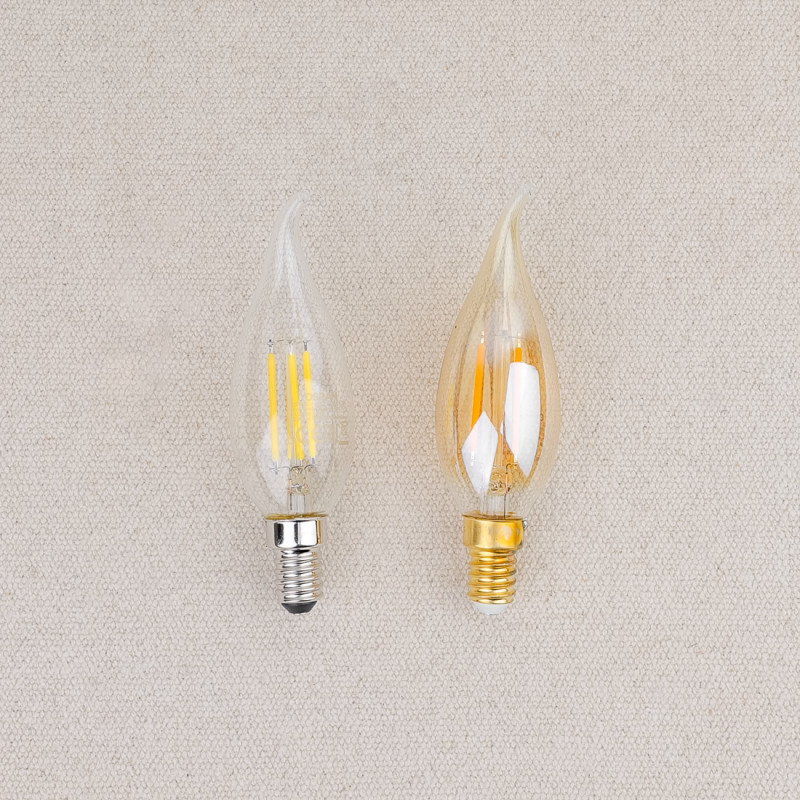 Flame bulb, amber or transparent finish, for chandeliers, sconces or hanging lamps.