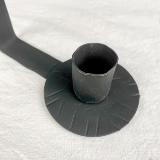Primitive style, between authenticity and modernity, for this wall candleholder fashioned in black iron. The material is deliberately crude, with traces of forging shaping the metal, giving it its charm.