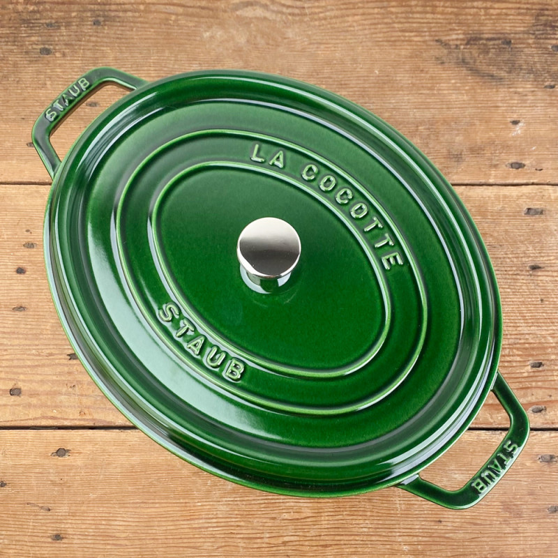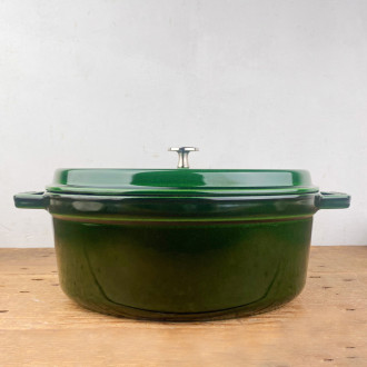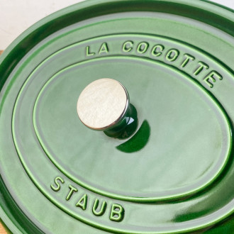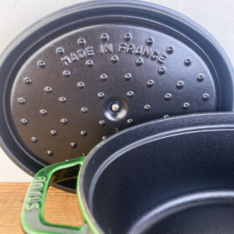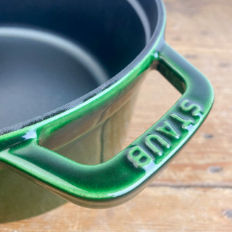 Enhance your recipes with Staub's basil-green cast-iron casserole, made in France. Ideally suited to slow, even cooking, this top-quality utensil combines aesthetics and performance, moving from the kitchen to the table with refinement. A benchmark in cooking with many assets: a meticulous design, optimized weight, an elaborate lid* and a superior-quality matte enamel interior.