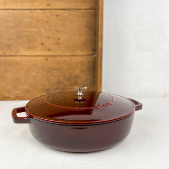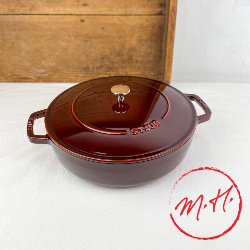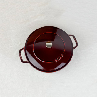 This Staub casserole, handmade in France, has all the assets: it issuitable for all types of fires, has a neat design, an optimized weight, an elaborate lid*, and a superior quality mat enamel interior.