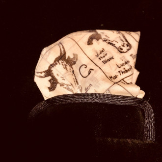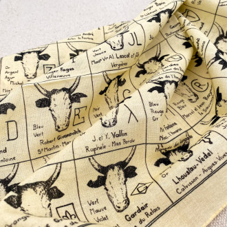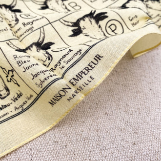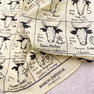 An ecru cotton voile scarf printed with the markings of the Camargue bull herds.