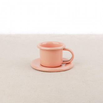 With its classic shape, this enamelled steel mug is reminiscent of the crockery we used to take on picnics or find on the breakfast table.