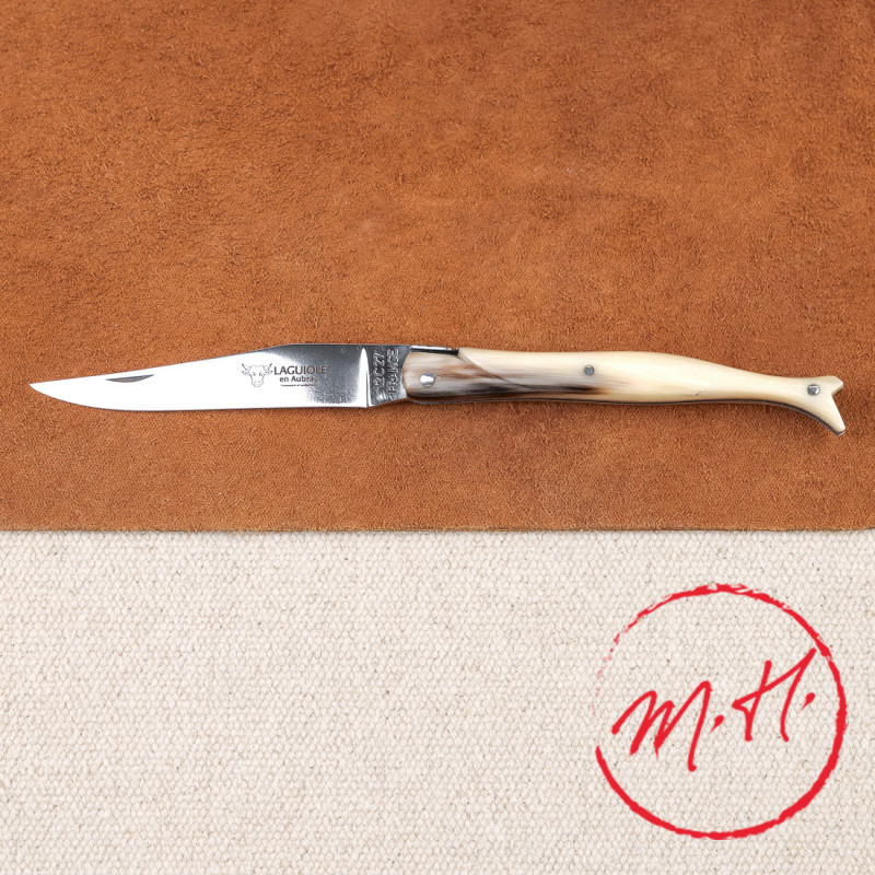 Handle: 10 cm full handle in blond horn tip ("Bottine" model)
