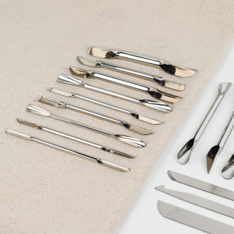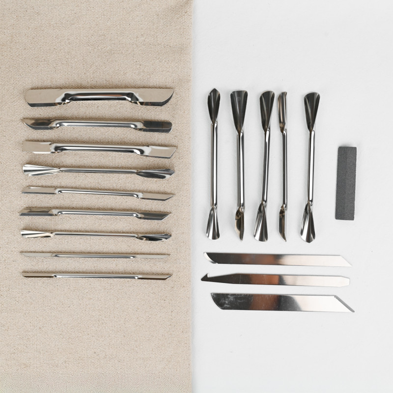 18 gouges in a variety of shapes: V-shaped, U-shaped, straight, curved, thin or wide, to adapt to all types of cuts and materials.