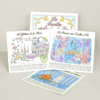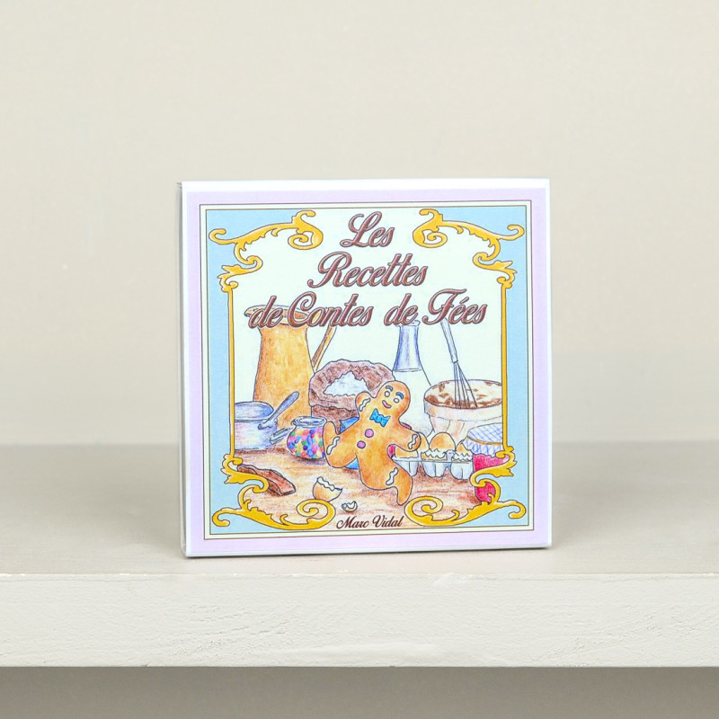 The box contains 21 illustrated cards describing recipes inspired by fairy tales, with ingredients and steps to follow.