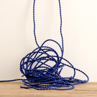 Twisted textile cable. Sheath in royal blue viscose, sold by the meter.