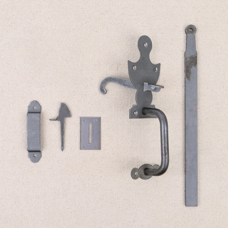 This locking device is a complete hardware set designed to provide reliable, long-lasting closure on wood or metal joinery.