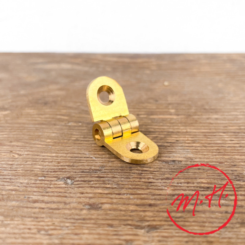 This "cookie" hinge is discreet, attaching with just two screws and restoring the use of an antique furniture door or chest lid. Made of solid brass, it has a pleasant sheen that blends well with the color of the wood, whether new or weathered.
