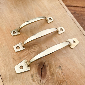 This brass handle adapts to different proportions and can be used in series for a harmonious look on all furniture.