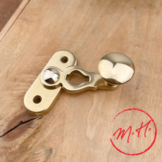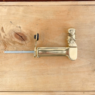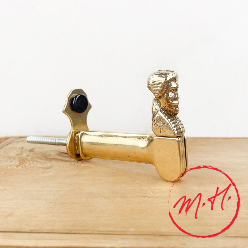 Both functional and ornamental, this brass shutter stop is reminiscent of the decorative codes of the 18th century, when sculpted stops depicting shepherdesses', horses' or men's heads were favored as a refined detail on facades.