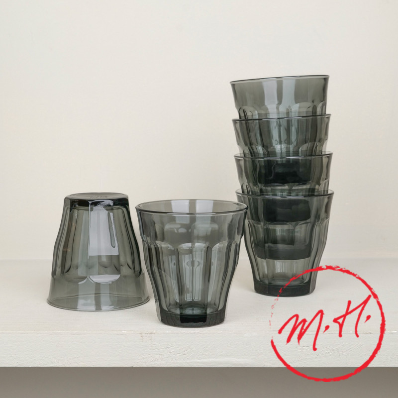This set of 6 x 25 cl glasses is available here in a smoked version, a subtle shade that brings a discreet, contemporary look to the table.