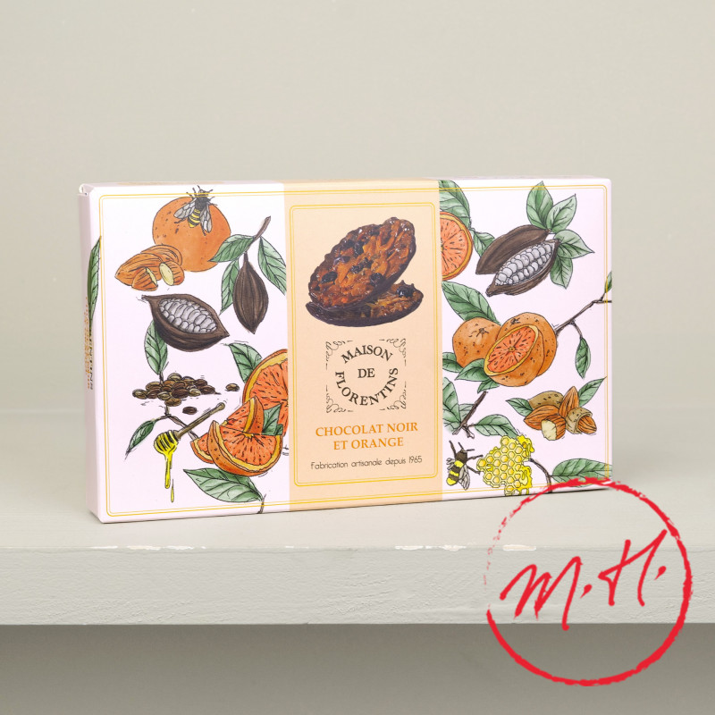 Discover orange and dark chocolate florentins from Maison de Florentins, handmade near Nantes to a traditional recipe. Each cookie is rich in almonds, butter and cream, with a nougatine base delicately coated in dark chocolate.