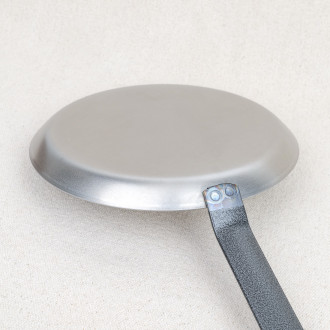 Its low skirt and French-curved handle provide a comfortable grip and precise movements. Its thick sheet metal ensures even heat distribution and enables high temperatures to be reached, ideal for golden-brown pancakes.