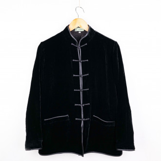 Asian-inspired jacket in silk velvet, perfect for mid-season.