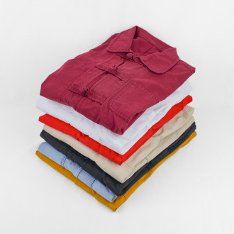 Its straight cut, Mao collar and knotted fabric buttons give it a simple look, true to its original use.