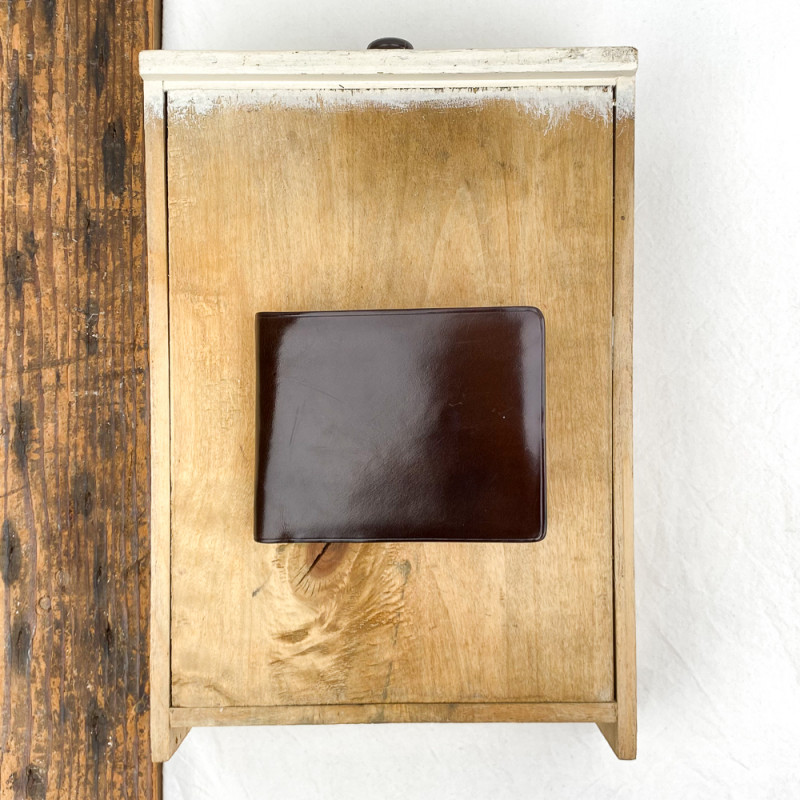 This wallet is made from beautiful black or slightly smoky brown shiny tanned leather.