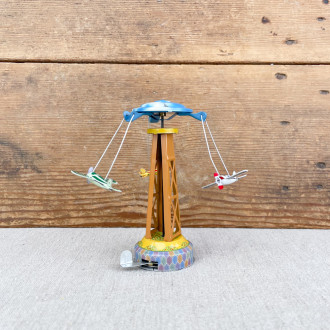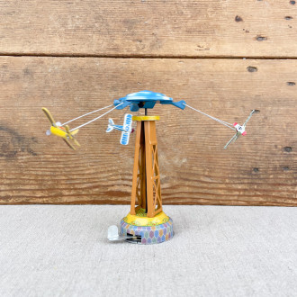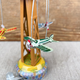 This delightful, carefully crafted mechanical toy takes the form of a miniature airplane carousel that will appeal to nostalgia enthusiasts and collectors alike.