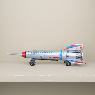 Immerse yourself in the world of space exploration with this 39 cm metal mechanical rocket! Inspired by vintage toys, this rocket isn't just beautiful to look at... it also has several functions. When you launch it on its wheels, the rocket rolls with momentum. But as soon as it hits an obstacle, an ingenious mechanism is triggered: