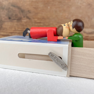 Designed in a matchbox format, simply wind it up before opening the box to hear the sweet melody that emerges.