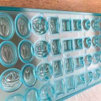 Professional quality chocolate mold with 36 slots. Made of very rigid copolyester, it guarantees easy removal from the mold and perfect shapes.