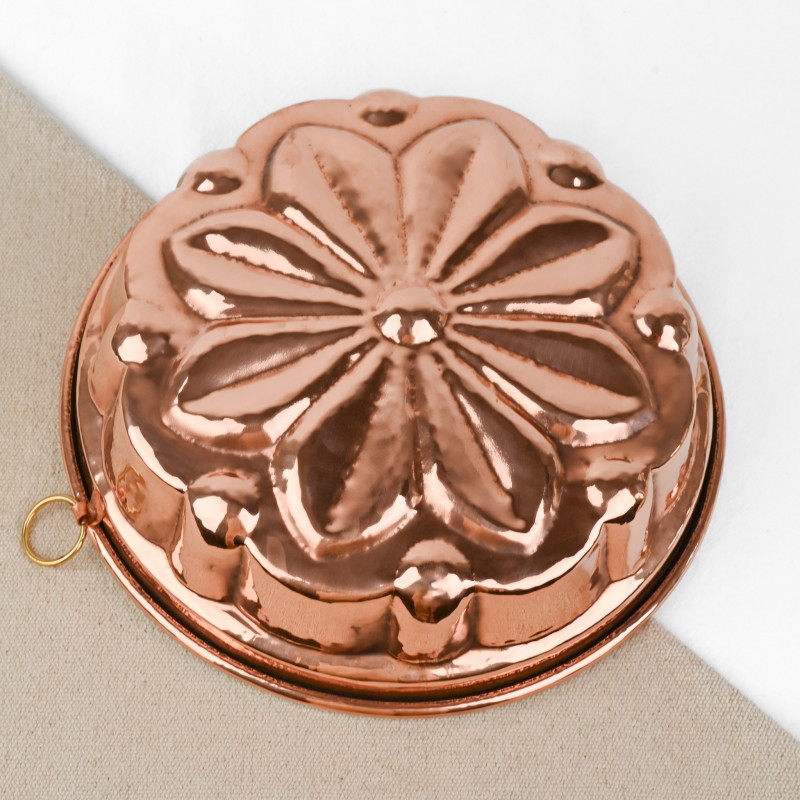 Elegant copper cake mould, decorated with a pretty flower motif, perfect for adding a touch of originality to your pastry creations.