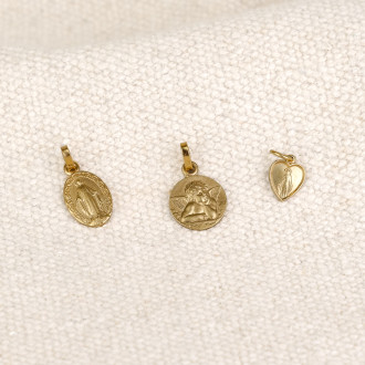 Medal of Our Lady of the Guard in gilded metal, the Good Mother is declined in oval medallion of 2 sizes or in heart, the angel Gabriel in round medallion.