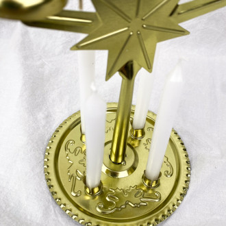 Includes two chimes, topped by 4 trumpet-playing angels and a large star. The base makes way for 4 candles, 1 cm in diameter and 10.5 cm high, included in the box.