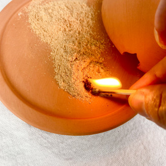 To release the full richness of this essence, place a small amount of powder in the terracotta diffuser dish, then light it with a match.