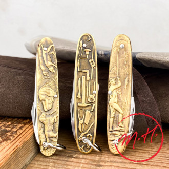 Made entirely of gilded brass, they feature a foot on the back to enable them to stand vertically.