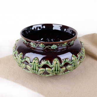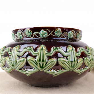 Terracotta pot cover with frog frieze