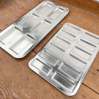 This tin plate for financiers is made in France by the oldest manufacturer specializing in pastry molds since 1887.