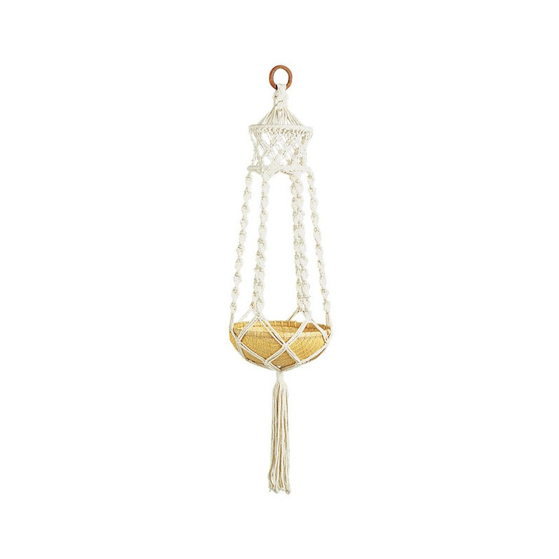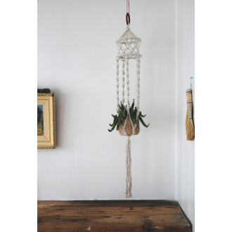 White macramé flower pot hanger, 130 cm high. ATTENTION: sold without the wicker basket.