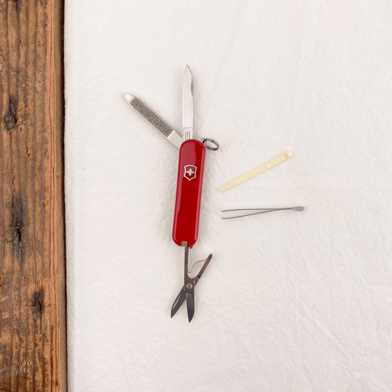 The mini Swiss army knife is available in a range of original pastel, acid or classic colors.