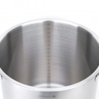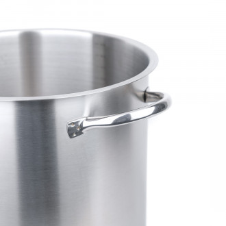 Pot in brushed stainless steel, suitable for all burners including induction and oven.Pouring rim and sandwich bottom for even heat distribution.