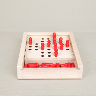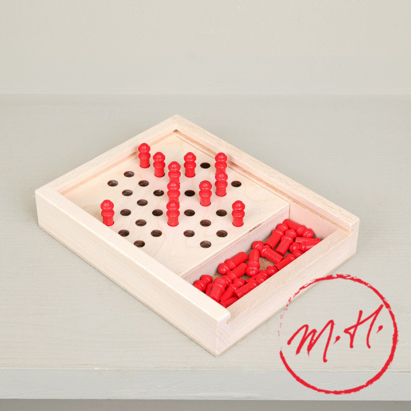 The aim is to remove the pieces by jumping over another piece, until only one remains. Although the game is called "solitaire", it can also be played by several players: each player can count the pieces retrieved to determine the winner. A simple, fun way to stimulate thinking and concentration, alone or with others.