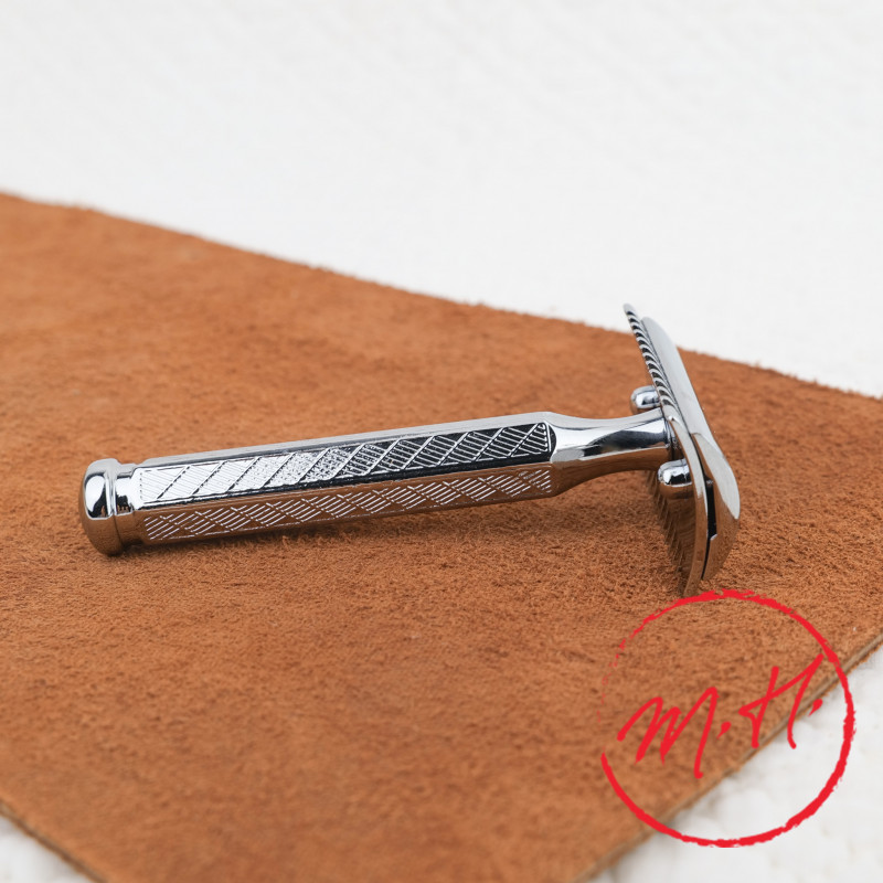 For a fast, smooth shave, with a short, hexagonal chrome-plated brass handle that makes it ultra-maneuverable.