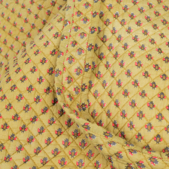 Its ochre-yellow fabric, decorated with small green and orange flies, gives it a bright, original look.