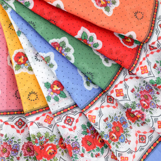 From the Souleiado house, this springtime square embodies textile expertise handed down through generations. Drawn from the archives of Provençal patterns, this emblematic motif is produced using traditional cotton printing techniques. The finely woven voile is distinguished by its natural suppleness and light touch, ideal for accompanying your outfits, tied around the neck, in the hair or as a touch of color on a bag or in a pocket.