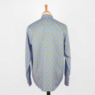 Straight shirt in cotton percale with discreet sunny yellow graphic prints on a light blue background. It was one of Picasso's favorites!