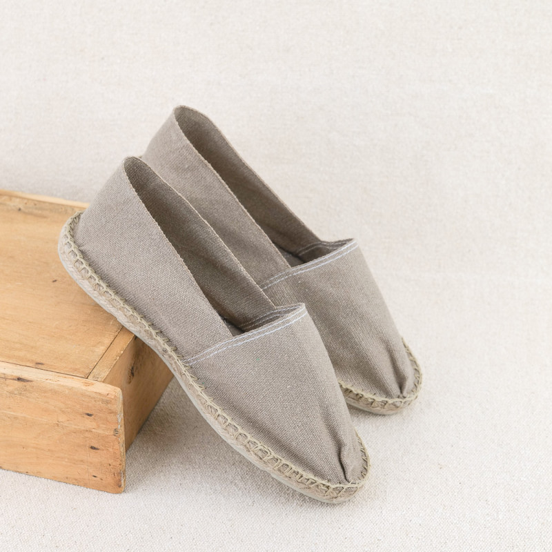 Dyed a natural sandy beige, this espadrille from Mauléon is distinguished by its sobriety and handcrafted quality. Designed in the purest Basque tradition, it is assembled by hand, from the cutting of the cotton canvas to the fitting of the jute sole, reinforced with vulcanized rubber.
