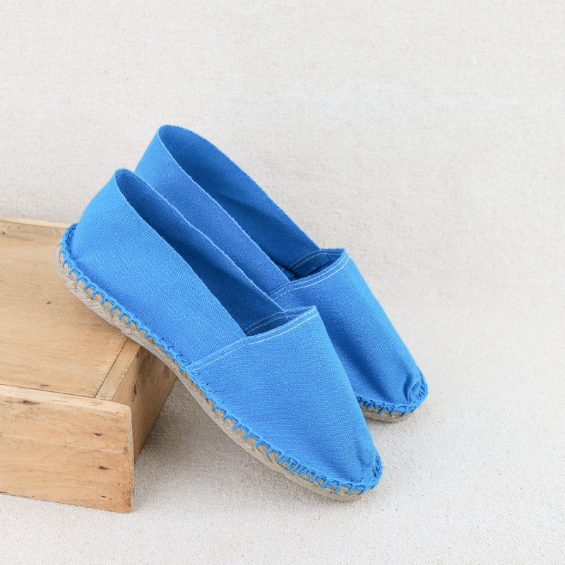 Fresh and invigorating, the turquoise canvas of this Mauléon espadrille aptly renews the Basque heritage. Manufactured in a workshop perpetuating 19th-century know-how, it combines traditional gestures with exacting manufacturing standards.