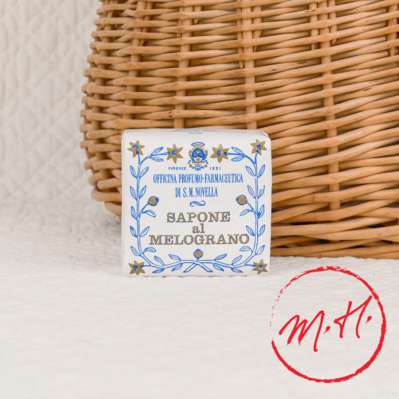 Carefully formulated and enriched with nourishing milk, Melograno soap respects the skin while depositing Officina's emblematic fragrance Santa Maria Novella. Its fine, creamy lather is suitable for all skin types, even the most delicate.