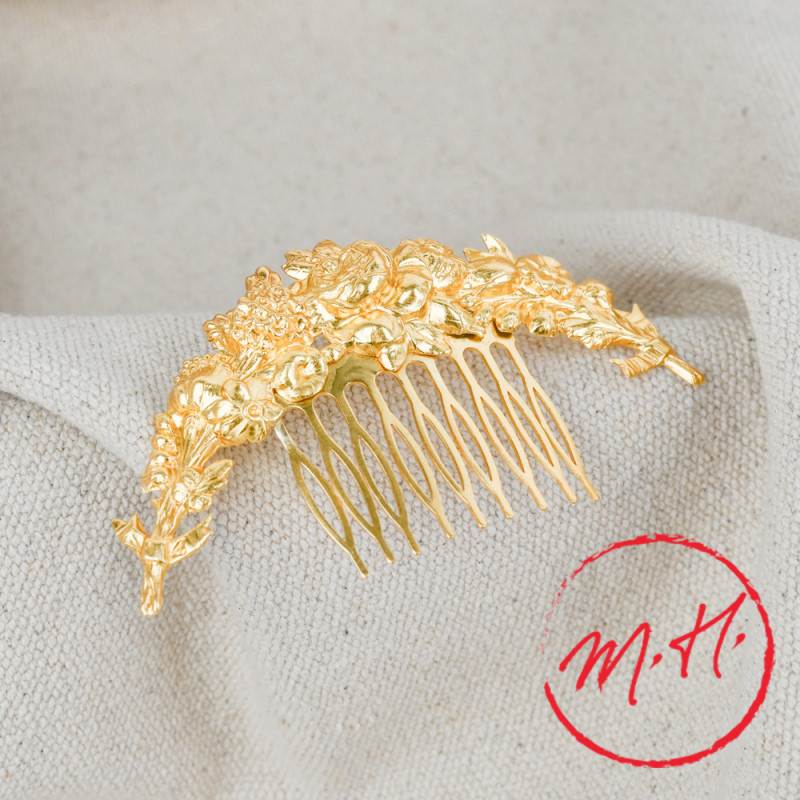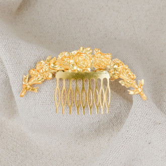 Add an exceptional touch to your hairstyles with this rose garland comb, delicately crafted in copper with a gold finish.
