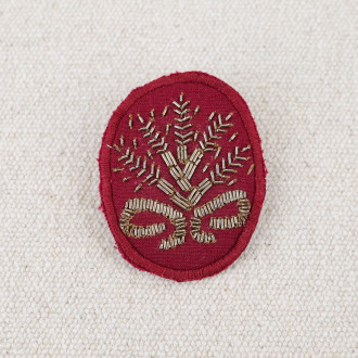 A combination of two pretty brooches embroidered with a bouquet of ears of wheat. Their oval, crest-like shape makes them a timeless, easy-to-wear accessory.