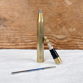 Cut from a solid block of brass, the Kaweco Sport ballpoint pen is anything but fragile. Dense, solid, deliberately rough, it's designed to be used without care. Slipped into a bag, placed on a workbench or forgotten at the bottom of a pocket, it'll come out all the more beautiful. Over time, brass develops a patina, discreetly marking the uses and places through which it passes.