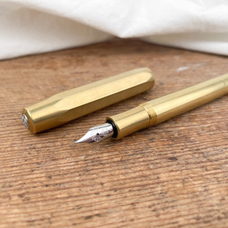Machined from solid brass, this pen develops a distinctive patina over time, reflecting the use and history of its owner. Its compact format, measuring 107 mm when closed and 135 mm when the cap is attached, makes it ideal for everyday, nomadic use. Weighing in at a hefty 44 grams, it offers a stable, comfortable grip.