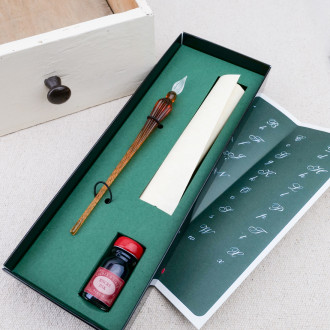 This set includes a large hand-crafted twisted glass nib, inspired by the illustrious skills of the Murano glassmakers in Venice, accompanied by a sheet of parchment and a bottle of sepia ink. Easy and pleasant to handle, the nib offers fluid, precise writing, inviting you to rediscover the pleasure of meticulous calligraphy.