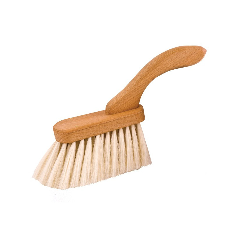 Broom made of oiled beech wood and goat hair, made by a German manufacturer specializing in natural and durable household items.