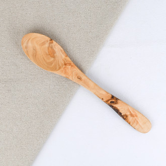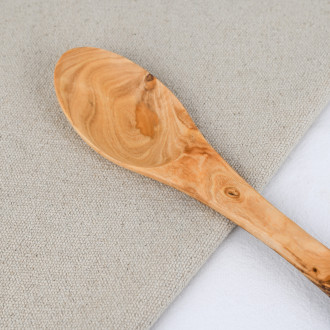 Curved kitchen palette made of olive wood, a local wood that is very solid and waterproof thanks to its high oil content.